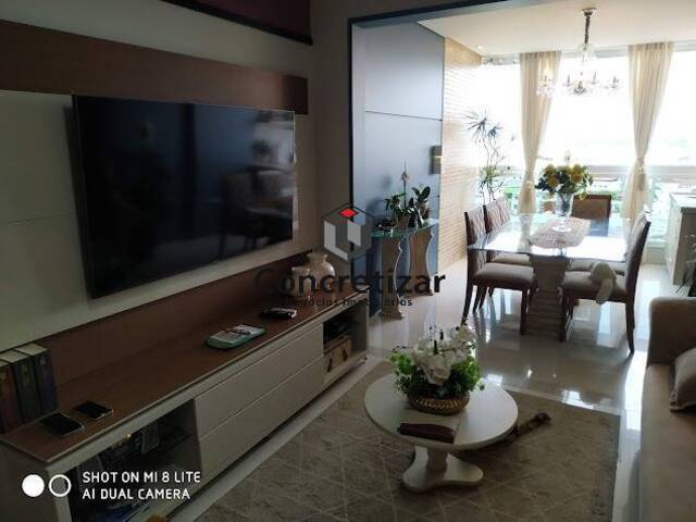 Apartamento finamente mobiliado com vista lateral para o mar, disponível para venda, composto por 3 quartos, sendo um suíte com varanda, e outro também com varanda, sala de estar/ jantar com varanda, banheiro social, copa/cozinha, área de serviço, banheiro de serviço. 2 vagas de garagem privativa.